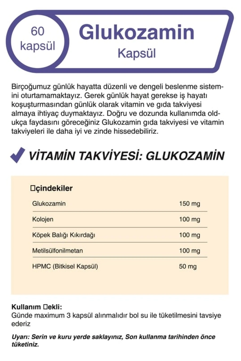 Kullanım Önerisi: Takviye edici gıda olarak günde 2 kapsül bol su ile alınması önerilir.